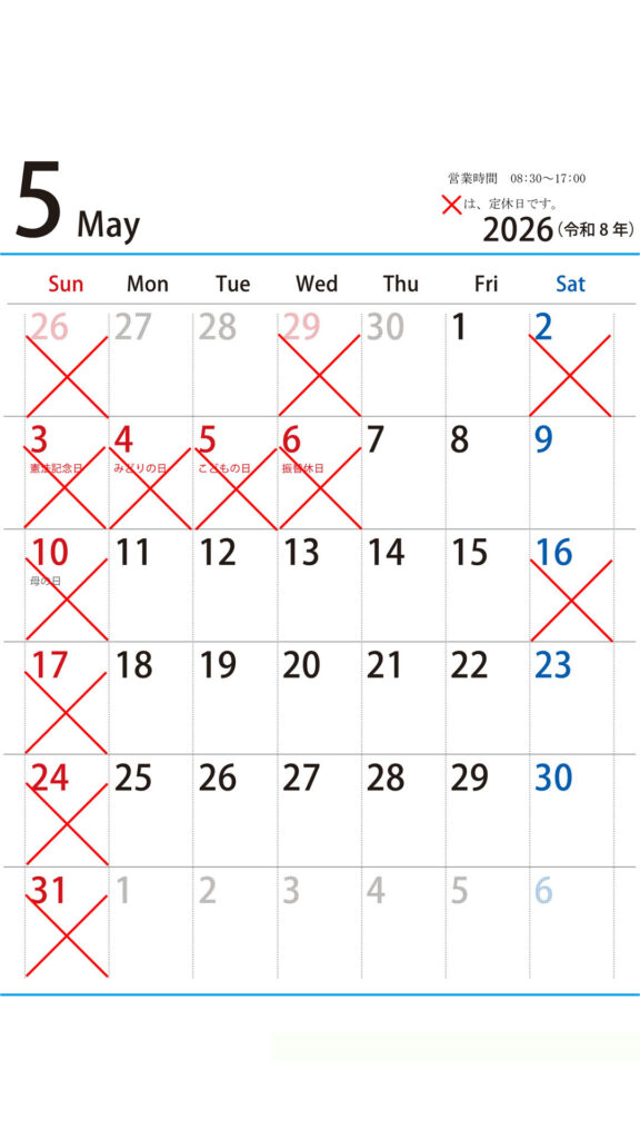 2026年5月の税理士法人内山会計神藤事務所営業カレンダー